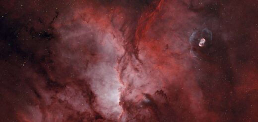Sandqvist 17, the Dark Wolf nebula, is located near the stars Zeta 1 and 2 Scorpii. It is a dark nebula that resides infront of the emission nebula Gum 55 or RCW113. This broadband image was taken under the dark skies near Eurardy, Western Australia with an integration time of 9hrs 20min over two nights.