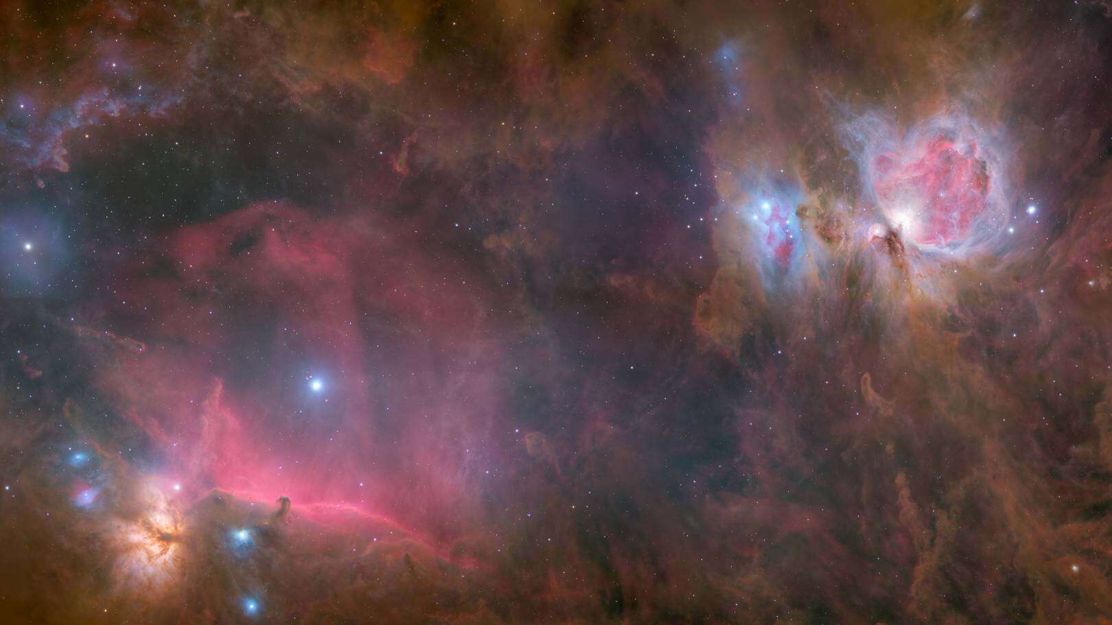 Orion Region 2×2 Mosaic by Will Vrbasso · January 13, 2026 A work in progress. I'm partway through doing a large mosaic of the Orion region and just wanted to check to make sure I was collecting enough data, so I processed this 2 x 2 mosaic focused on the Orion and Horsehead nebula. Post Views: 17 Share